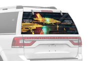 The spooky scene in this Natures Power rear window decal is reminiscent of Halloween or a very scary movie. Featured are the full moon in its luminous, silvery greatness, prominent in the dark night sky. It seems to be a stormy night as a flash of lightning is crashing right next to the moon. At the bottom are the silhouettes of trees in the light of the moon. Mixed in the night sky are a blend of dark purples and blues which make up the typical hues of the night. This dark scene is realistic enough to bring out the chills in anyone, and it will look great on your rear window.